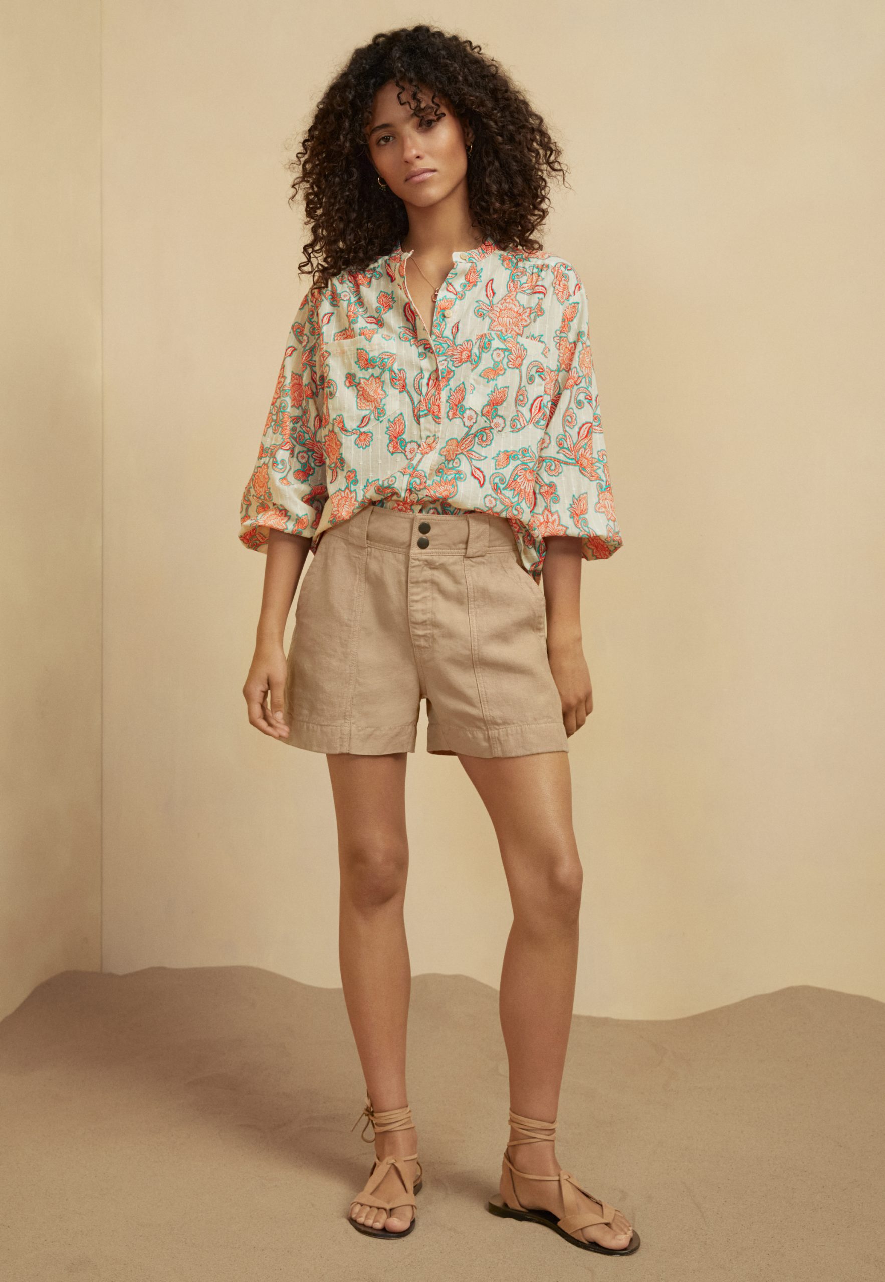 The blend of lyocell and linen creates a softly structured fabric which is perfect for these tailored shorts. With two deep patch-pockets at the front and sides and more at the back, there are wide loops for your belt as well.