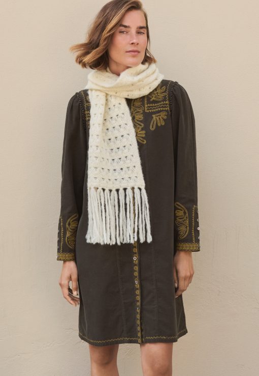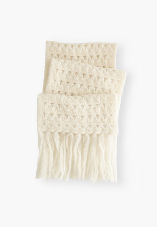 A wonderful sweeping scarf in a super-soft alpaca blend that is knitted in a layered and textured crochet-stitch.