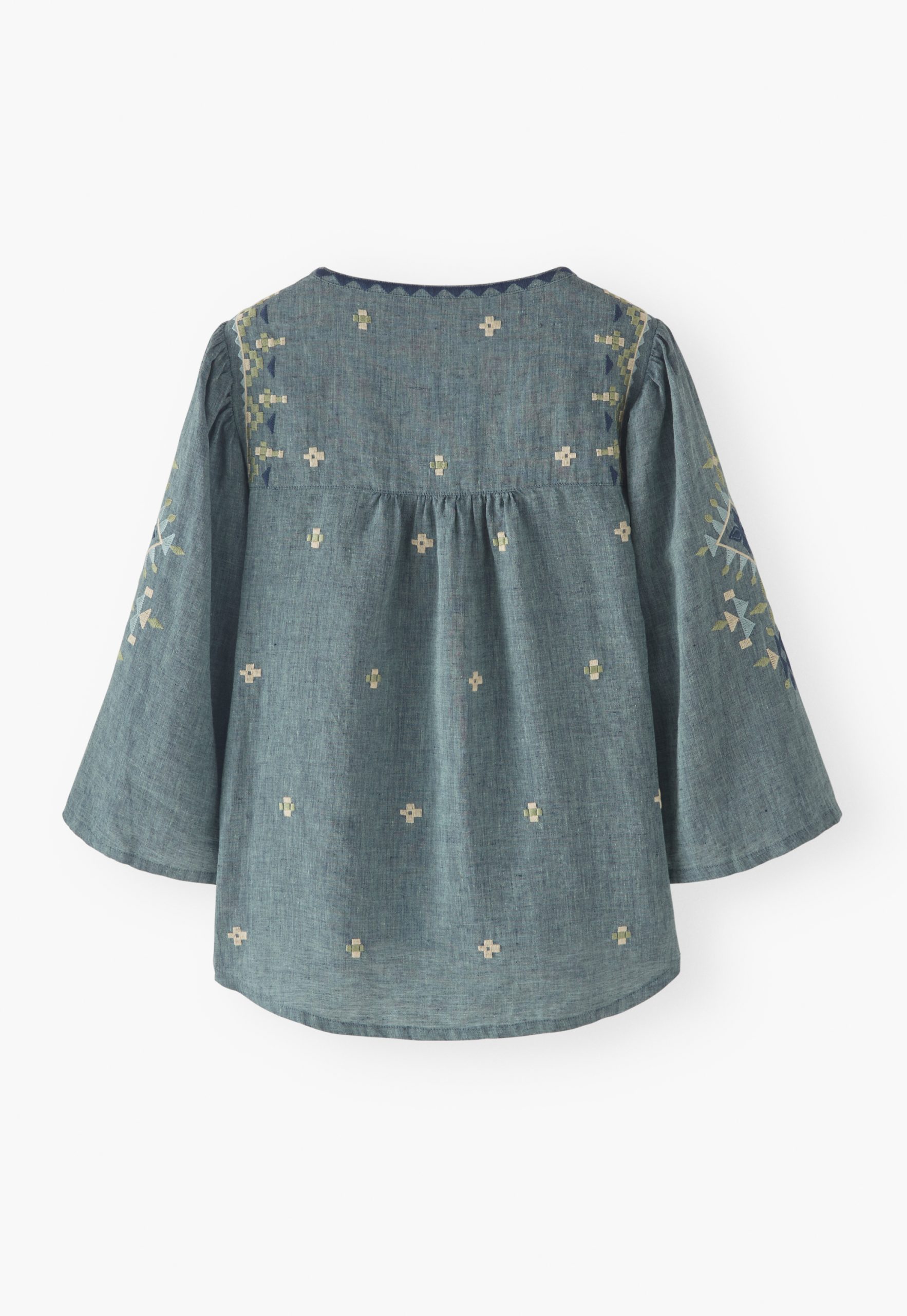 - Gentle gathers from back yoke