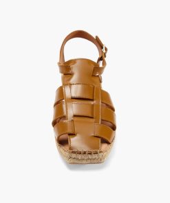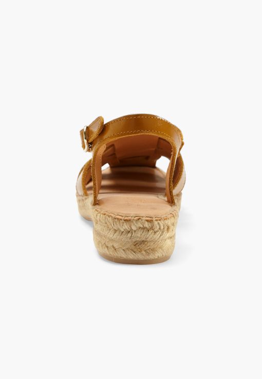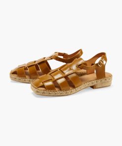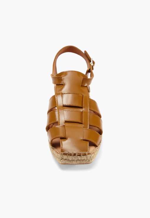 Square-toe leather cage-style sandal with an espadrille style jute trim and low heel. With an ankle strap and buckle fastening, a soft leather footbed and durable rubber soles.