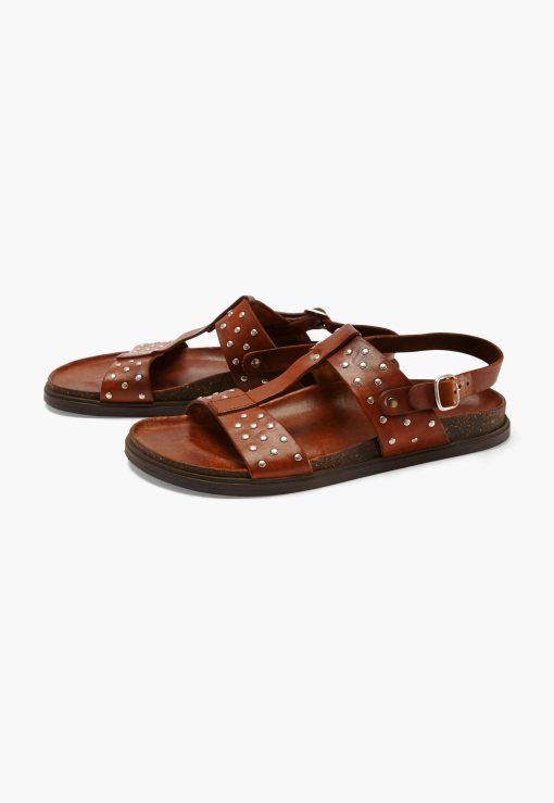 Handcrafted in Italy, double strap leather sandals with metal stud details. With a moulded vegetable-tanned leather footbed for comfort, and a durable rubber sole.