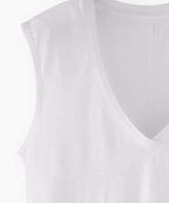 Tank-top styling in fine pure linen jersey. With wide shoulder straps, a v-neckline and a curved hem that is slightly longer at the back.