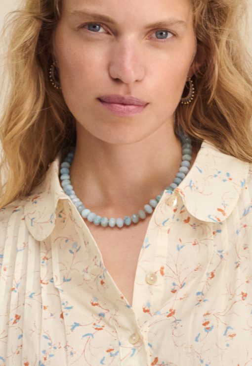 - 90% Natural Aquamarine Stone 10% 18ct Gold-Plated Sterling Silver Hand Woven Thread Charm