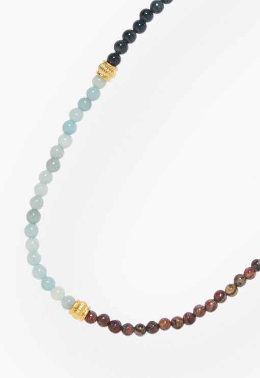 - 15% Blue Agate 15% Amber agate 15% Amazonite 15% Jade 15% Rhondite 15% Leopardskin 10% Gold Plate