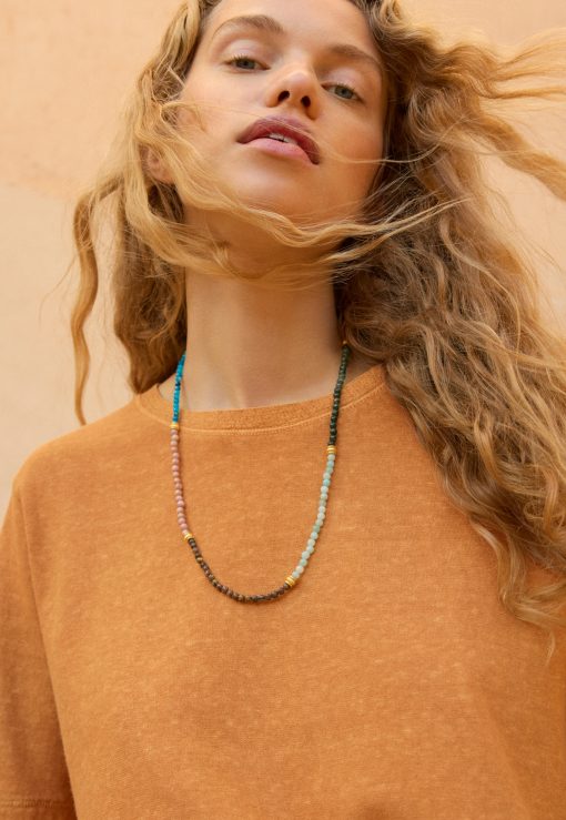 Add some colour and sparkle with this lovely necklace of semi-precious stones, trimmed with the occasional gold vermeil bead.