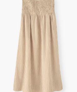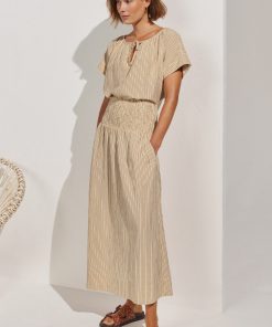 A cool and comfortable softly crinkled textured maxi-skirt with a deep elasticated waistband. Pair with the matching stripy blouse or mix it up with a contrasting vest or T-shirt.