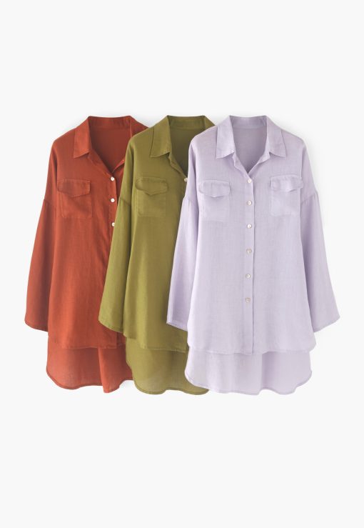 This wonderfully versatile oversized linen shirt can be styled so many ways. Layer over a swimsuit on the beach, button up and tuck into your favourite denim or even wear it as a dress.