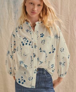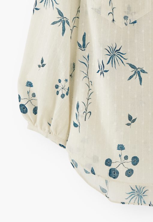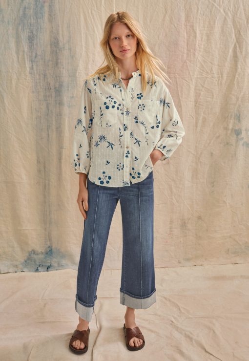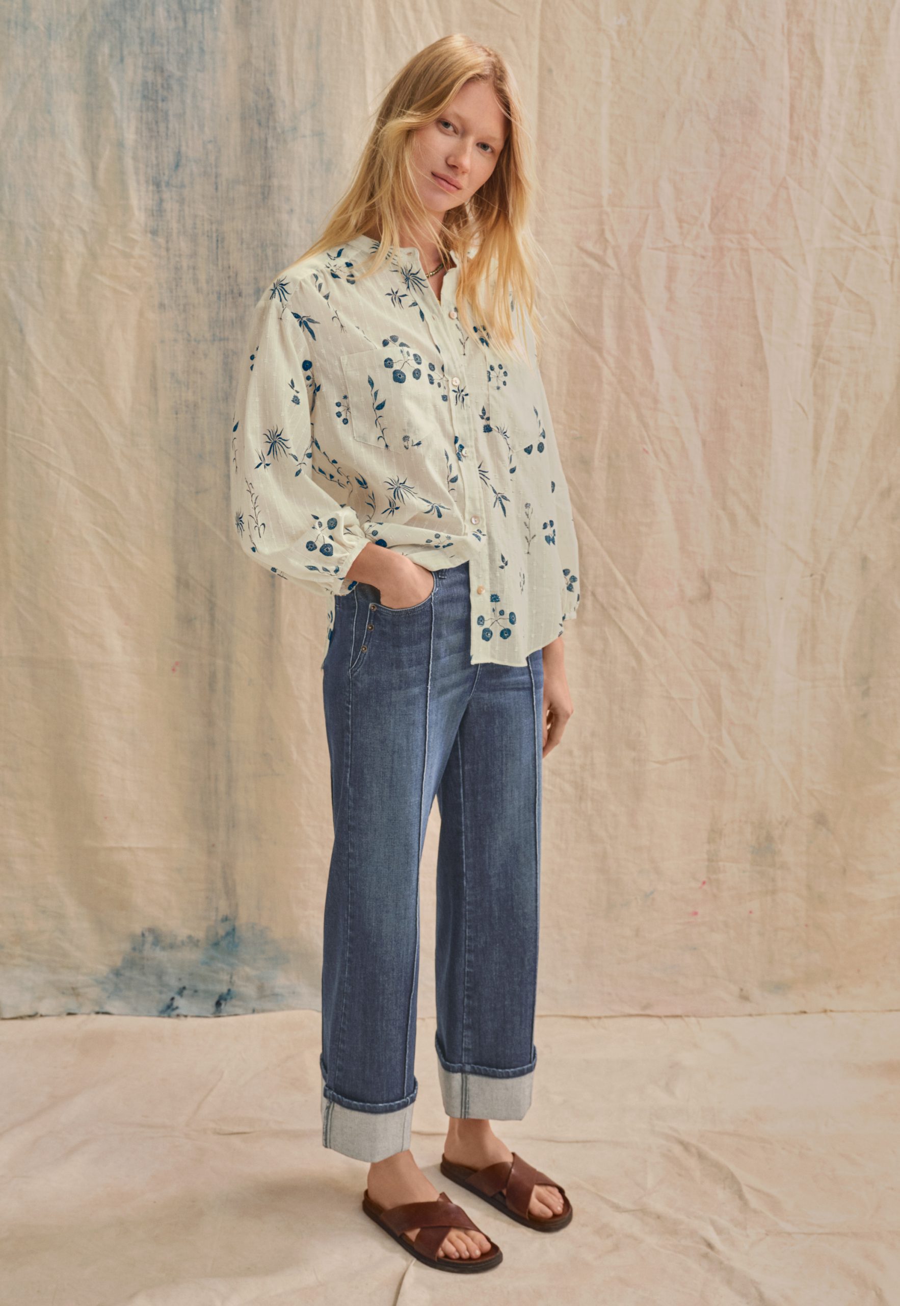 Lightweight Swiss-dot cotton shirt featuring an exclusive Wrap London botanical print. With a curved hem that’s slightly longer at the back, perfect to tuck into your jeans or shorts.