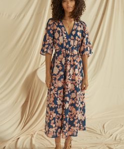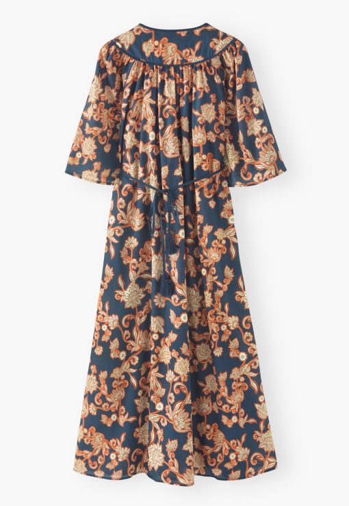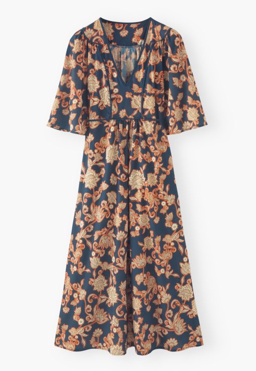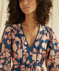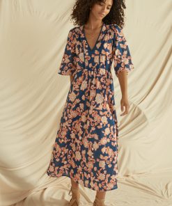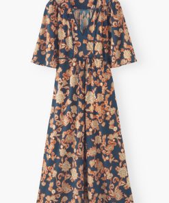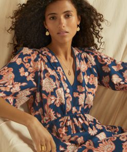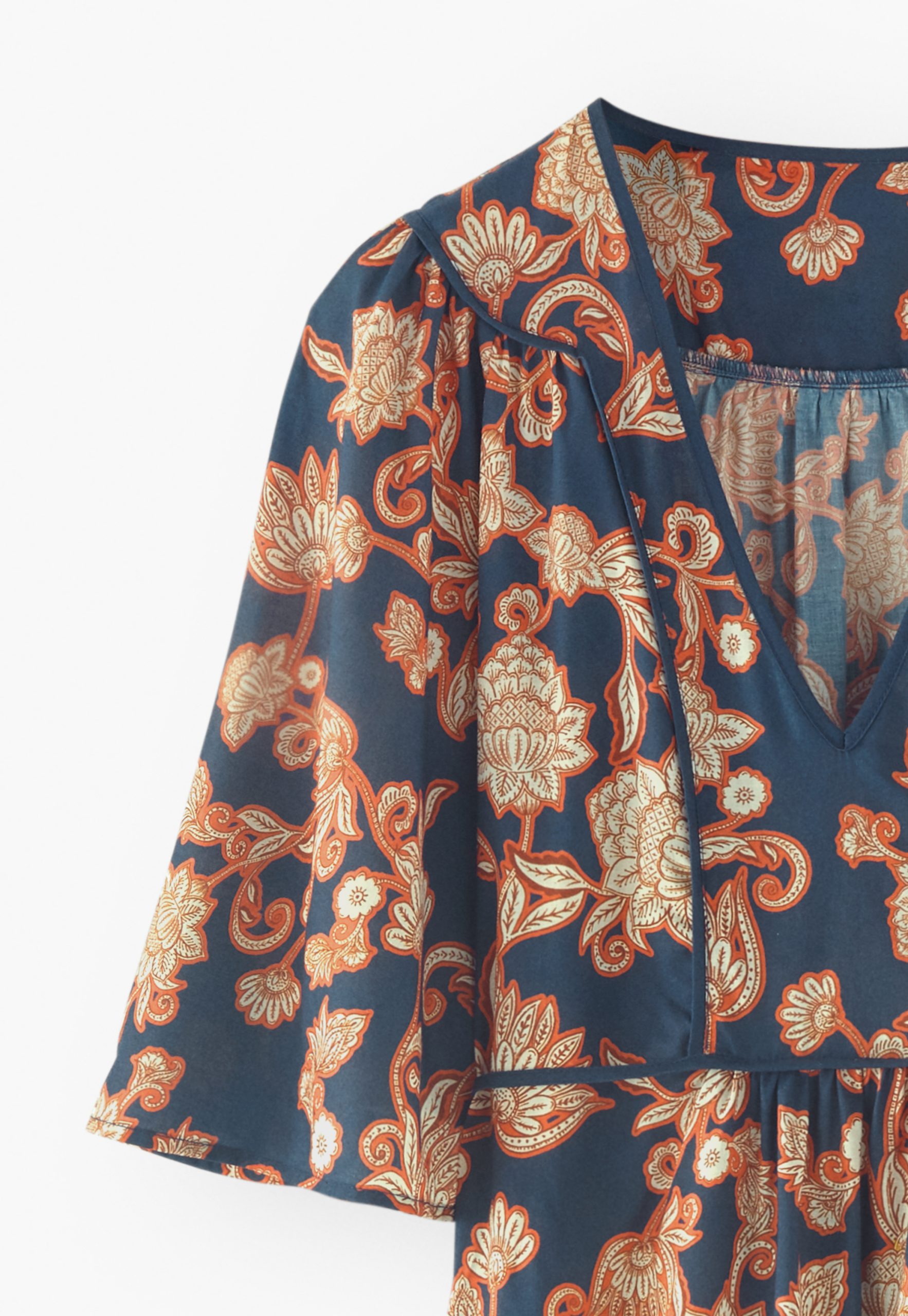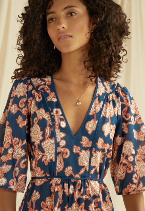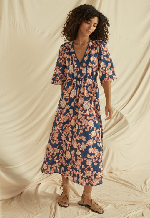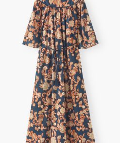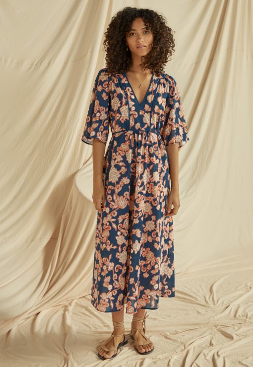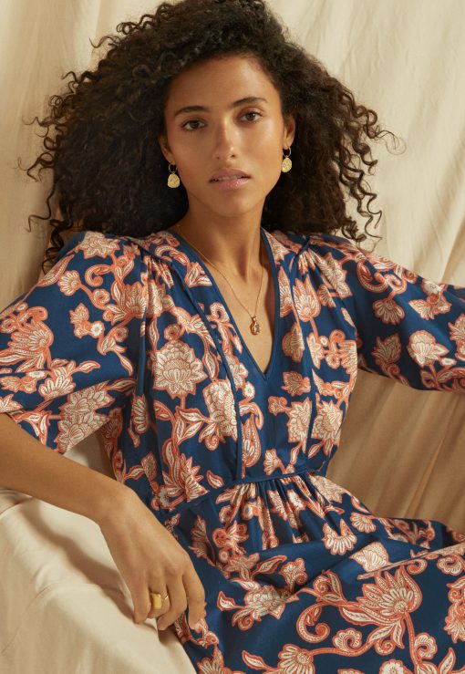 Distinctive exclusive prints are at the heart of this season’s collection and this lightweight cotton dress showcases a dynamic botanical-inspired design. Wide, elbow-length sleeves, a v-neckline and tassel ties at the waist give a seventies nod within this modern silhouette.