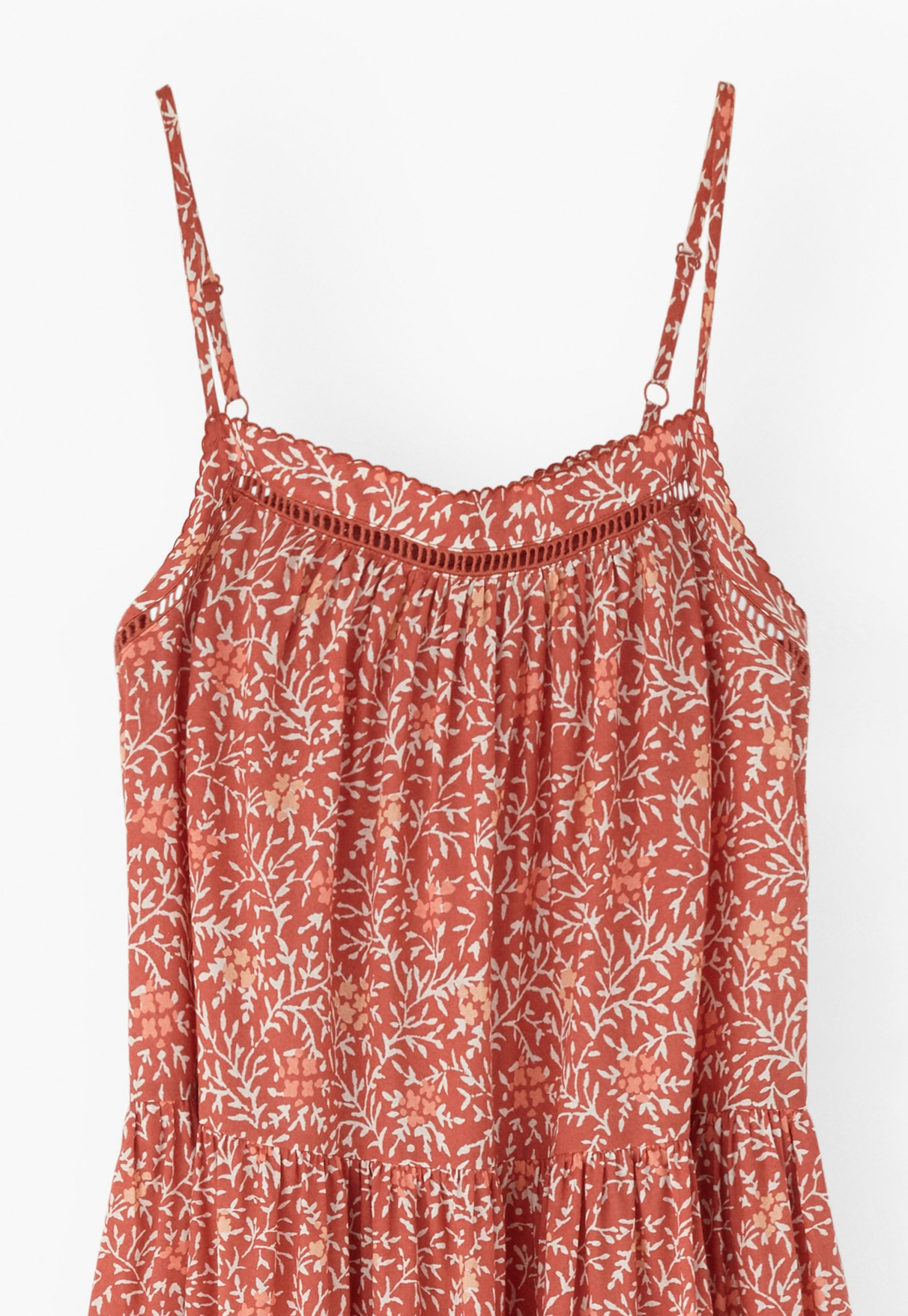 Feel the warmth of the sun on your shoulders in this lovely crisp cotton sundress. Lightweight and lovely, it features an exclusive Wrap London print, has fine adjustable shoulder straps and a pretty lace detail at the neckline. A beautiful dress for hot summer days.