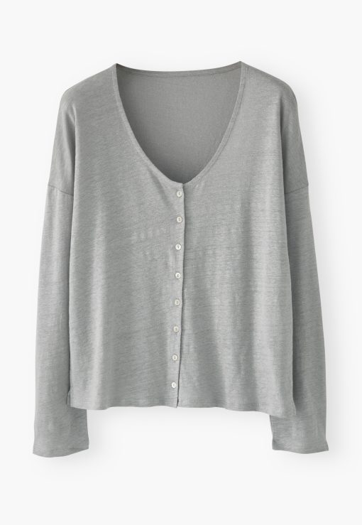 Button up the long-sleeve linen for a neat top to pair with trousers or keep it undone for a loose layer over a camisole or vest.