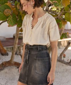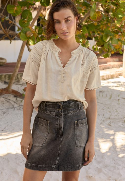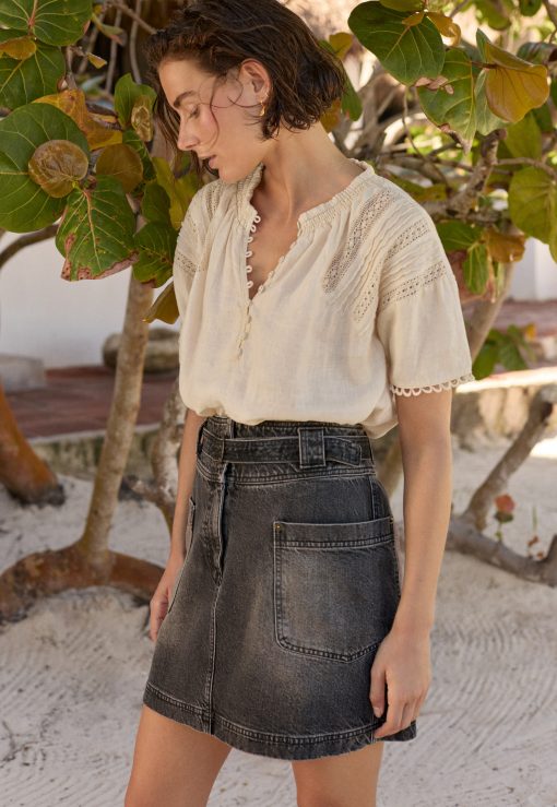 A great little skirt, washed to create a love-worn look and feel. With two statement-size patch-pockets at the side, zip-fastened front and a detachable belt. A great all-year-round style.