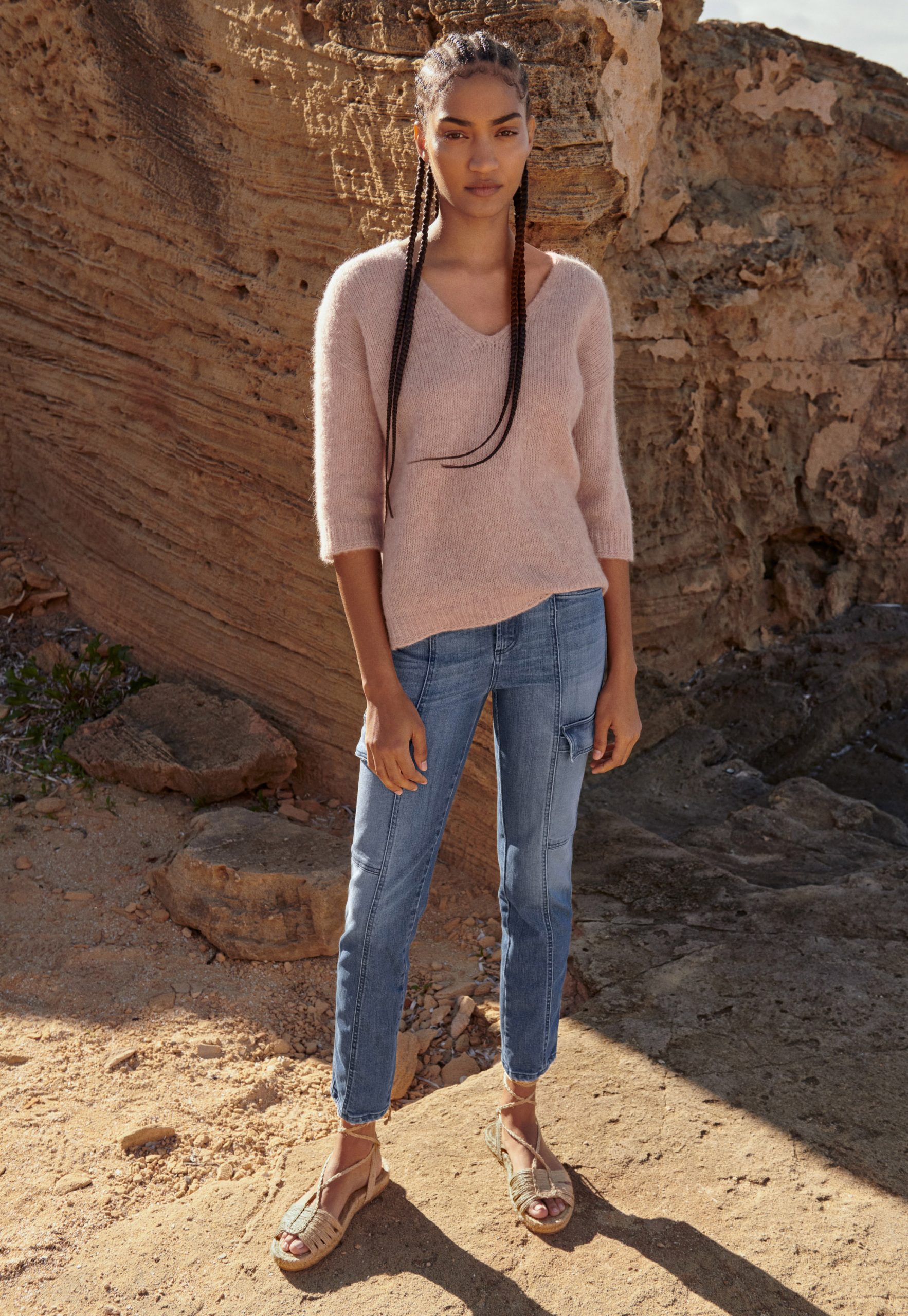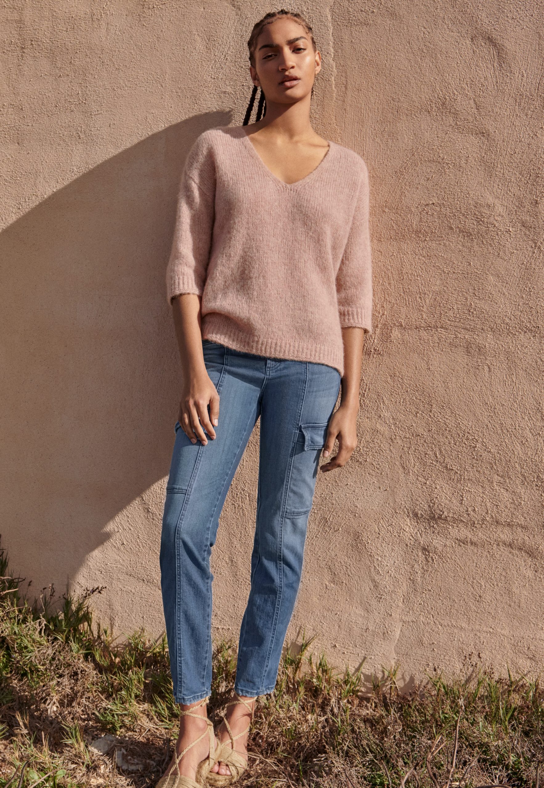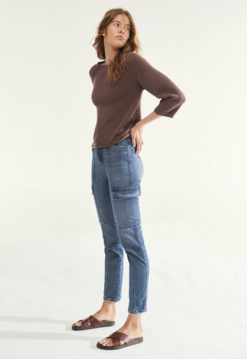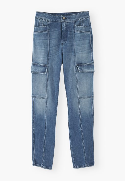 Something different for your denim collection. Cargo styling meets slim-leg jeans. Gently distressed at the pockets and hem for a well-loved feel from the first time you wear them.
