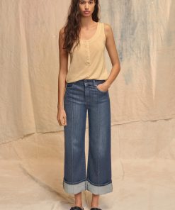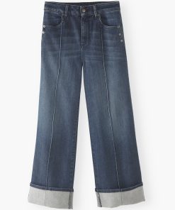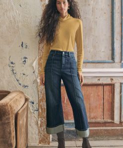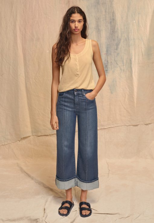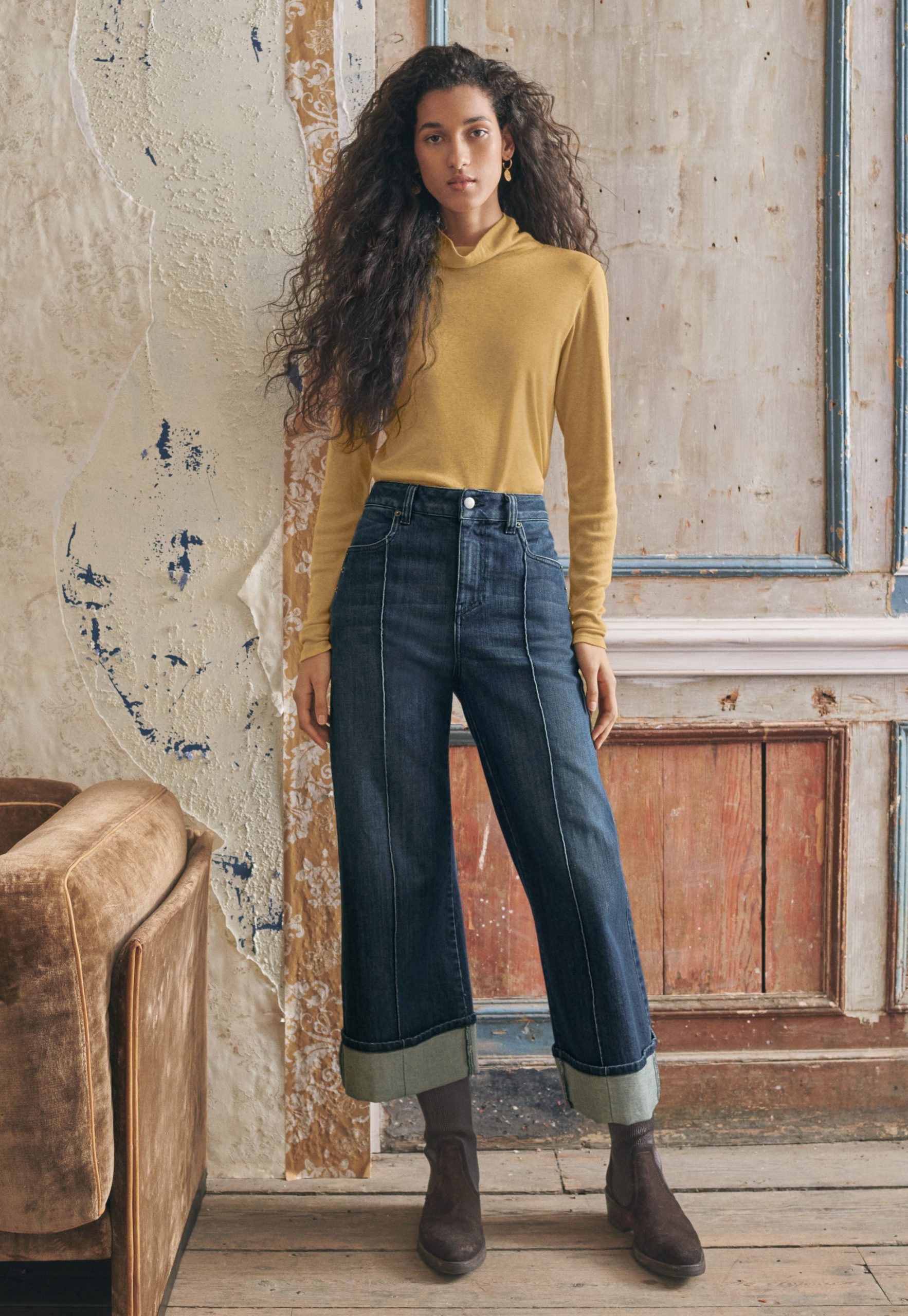 A versatile pair of straight-legged jeans with a neat seam detail and deep turn-up hems to show off your sandals.