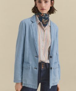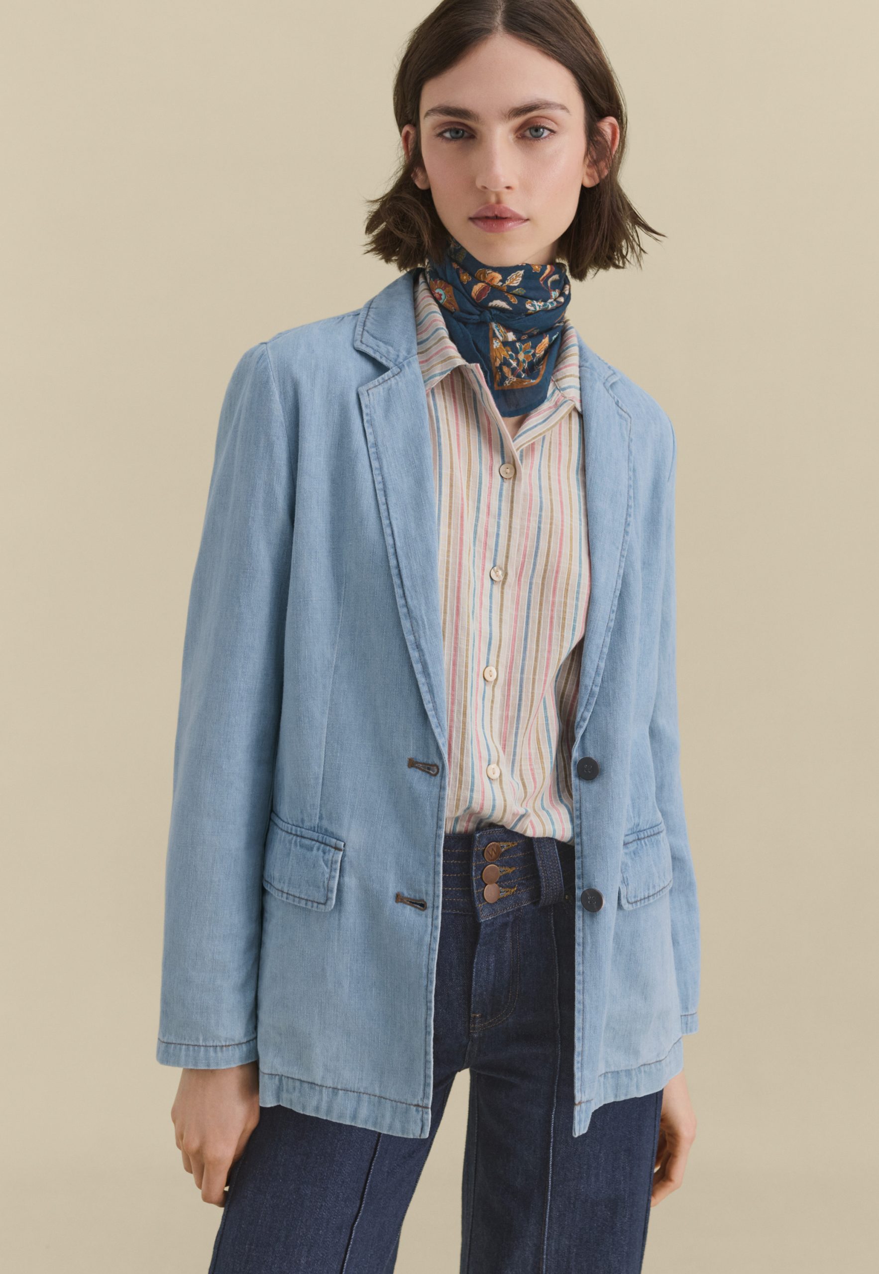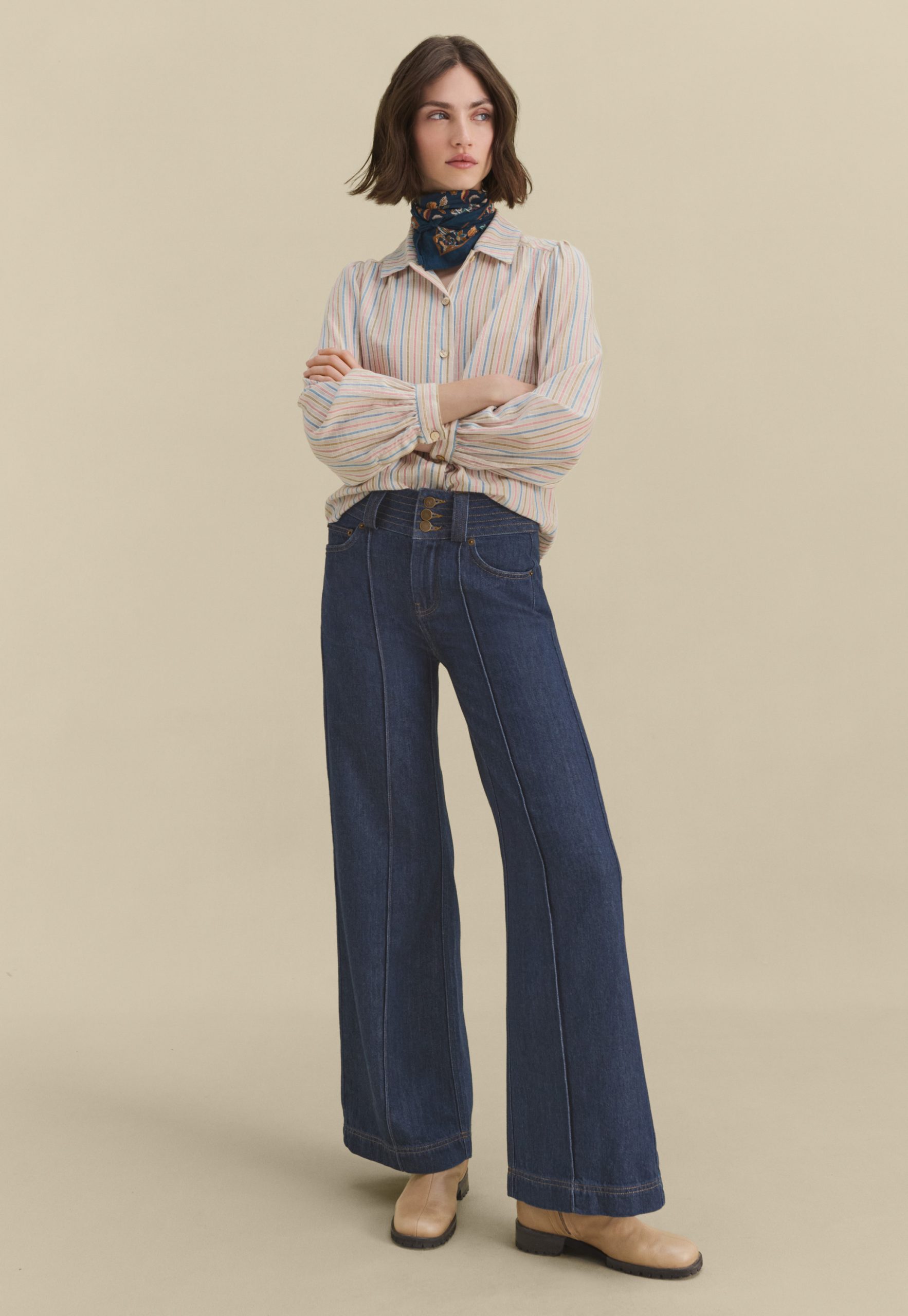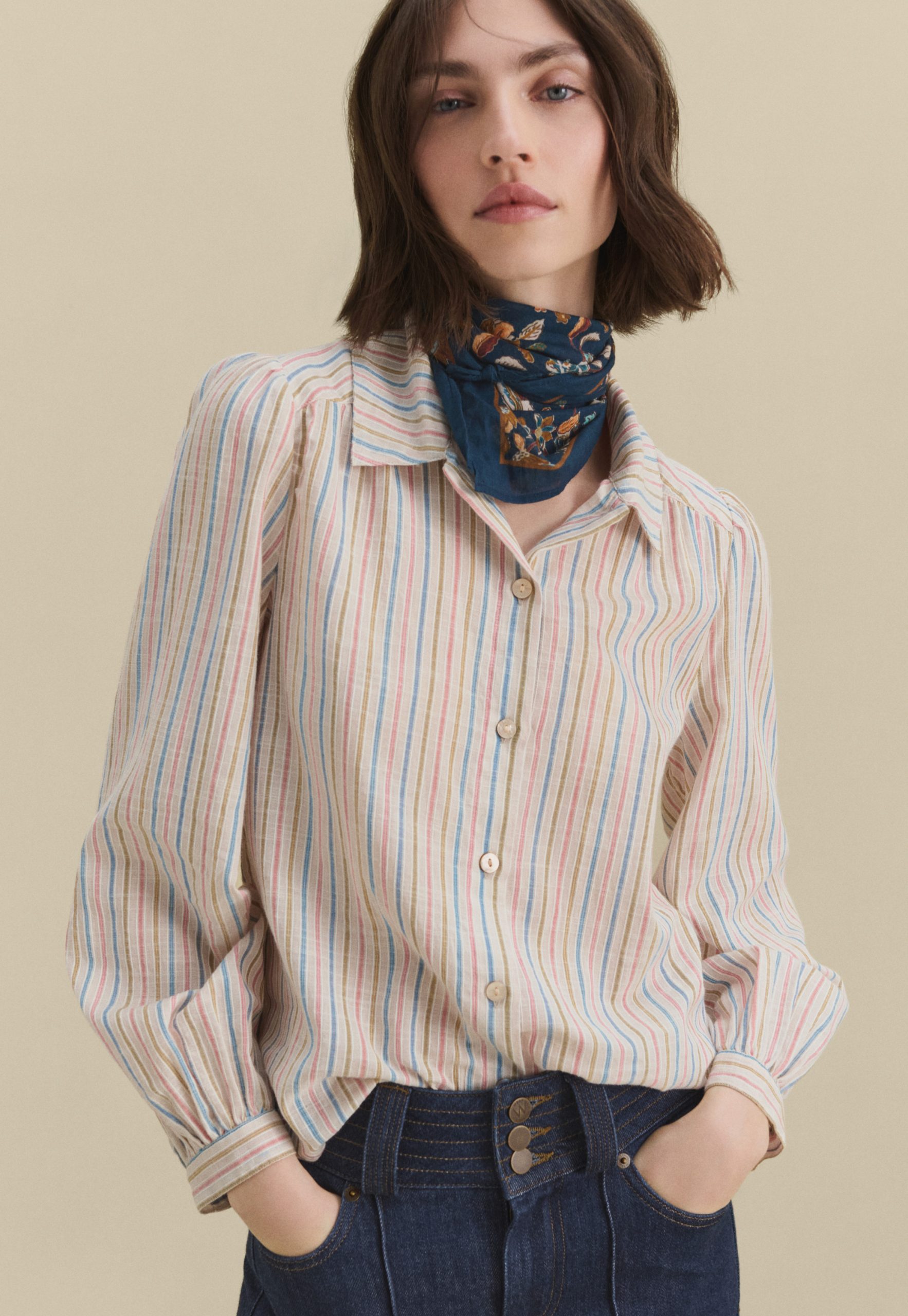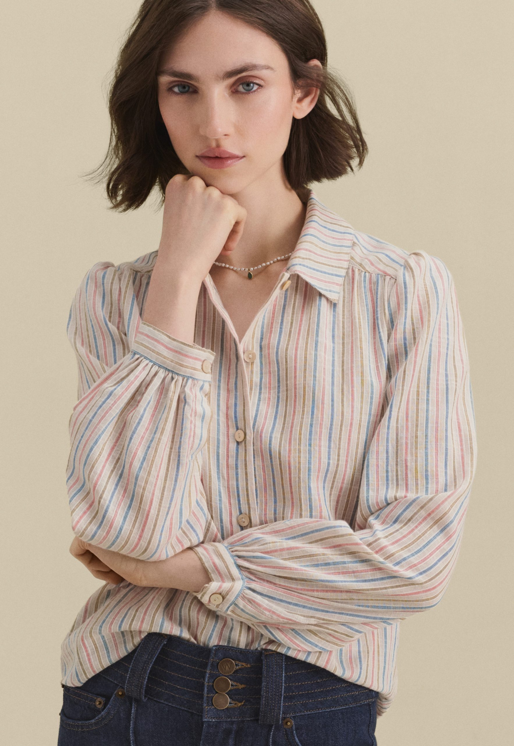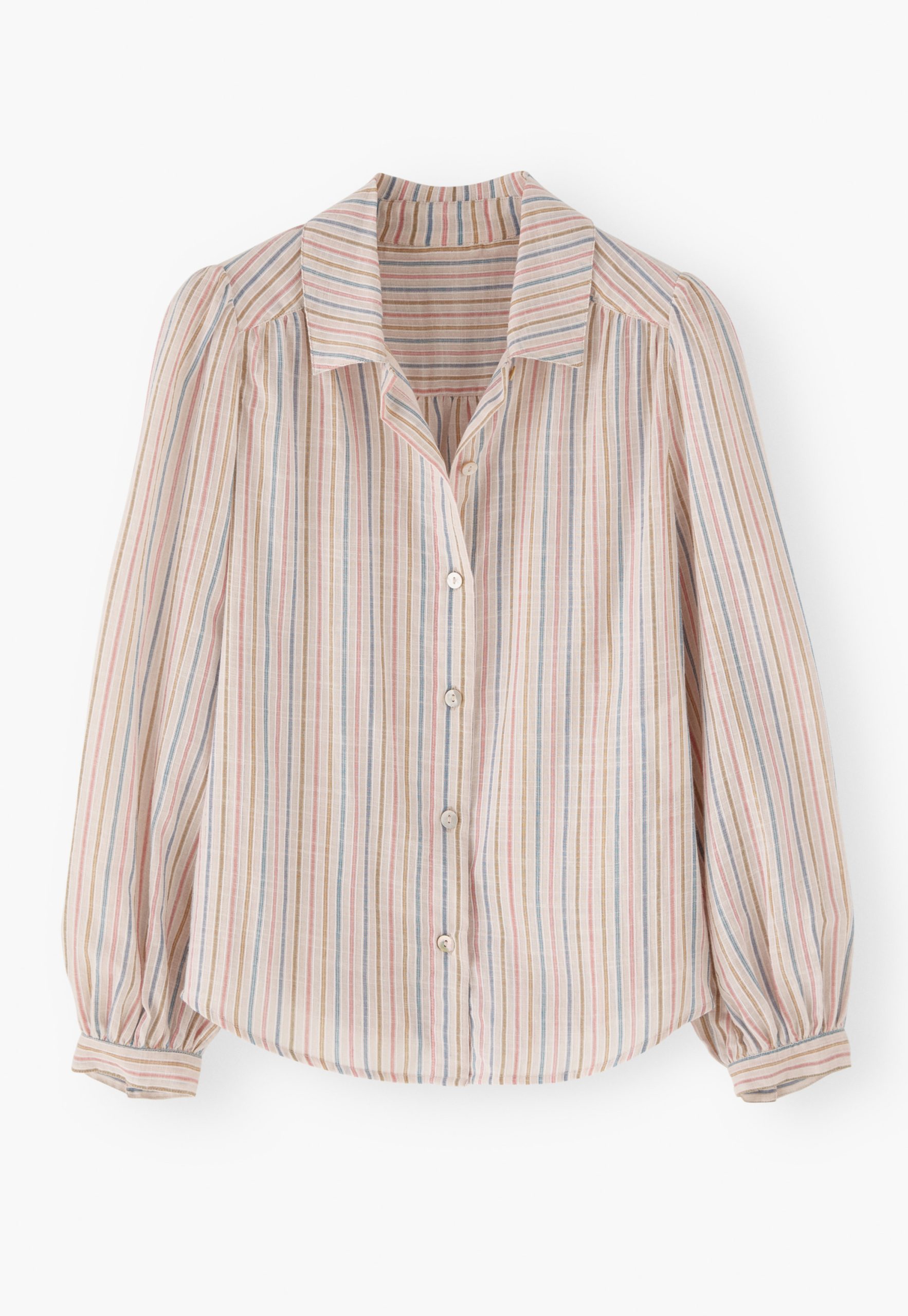Sometimes the day just calls for a fresh, striped blouse. This cotton one is softly textured in a relaxed fit in subtle colours that lift the spirits.