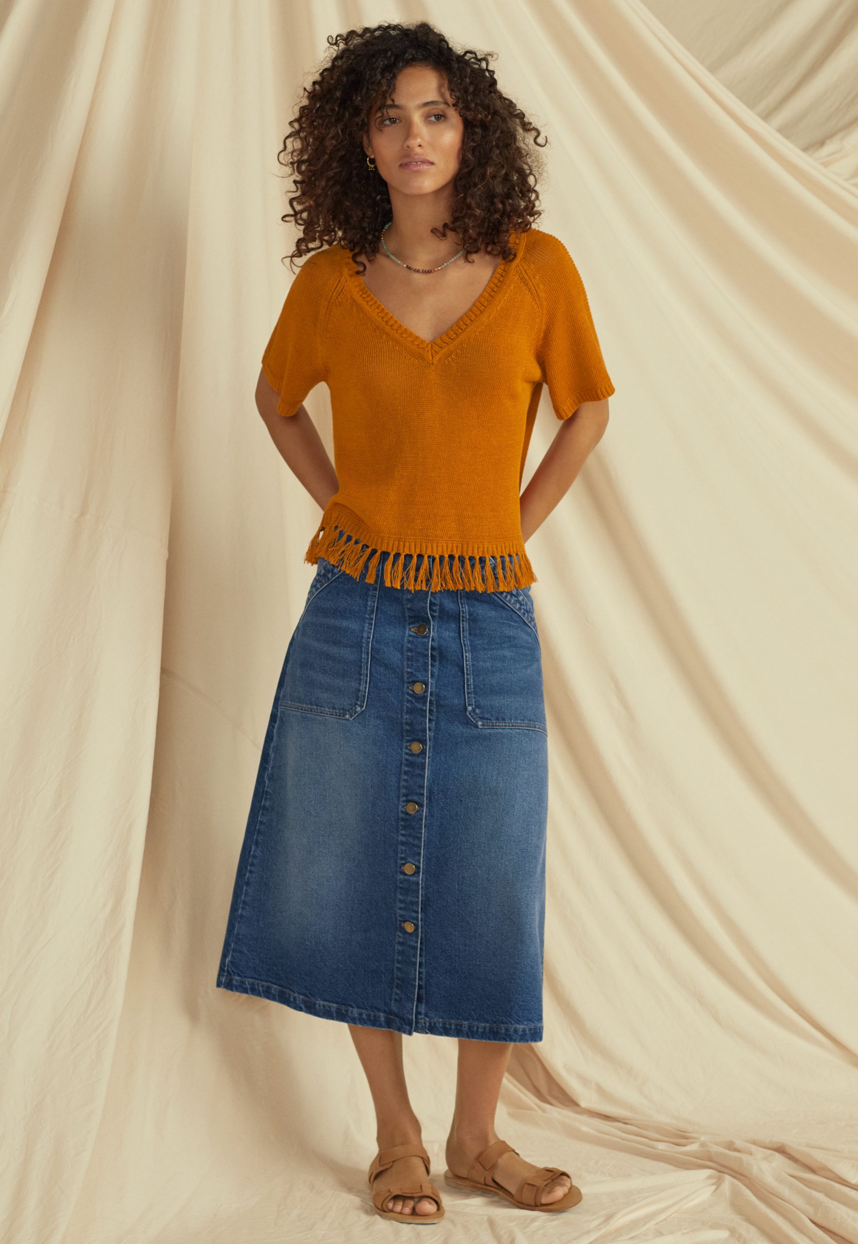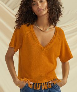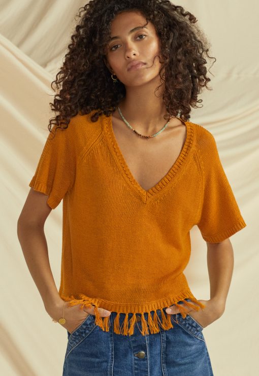 Wrap London Women’s V-neck Sweater | Bright Apricot